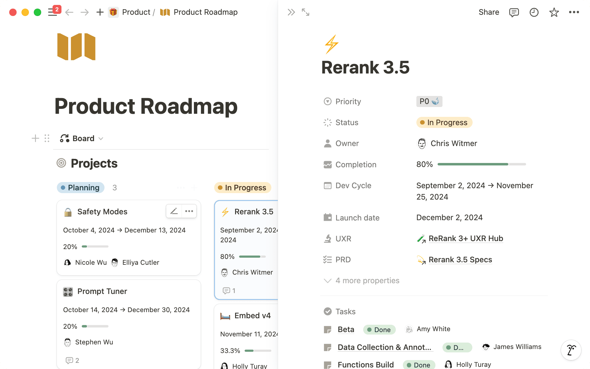 Building on the product team's centralized approach, Cohere's engineering team only has to look in one place to find the information they need, reducing context-switching and minimizing miscommunication. "Having a single hub for every project has become our source of truth and eliminates the confusion of scattered information across multiple tools,” says Staff Security Engineer Ads Dawson.