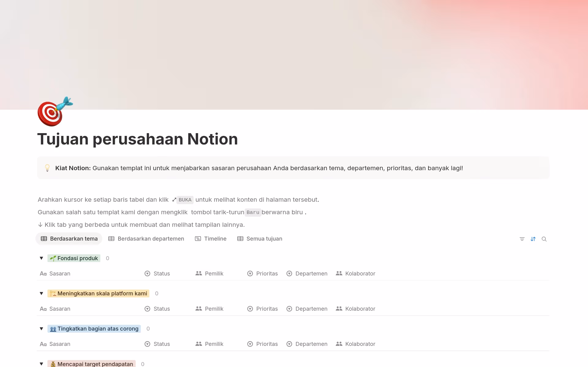 Temukan berbagai cara baru untuk menggunakan Notion di pekerjaan dan kehidupan Anda.Pekerjaan templat
